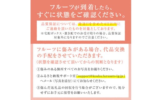 ※収穫時期により発送時期が前後するため、前もって発送日を確定しにくい状況や、寄附者様に良い状態で果物を楽しんでいただきたい思いから一定のルールを設けていることを何卒ご理解いただければ幸いです。